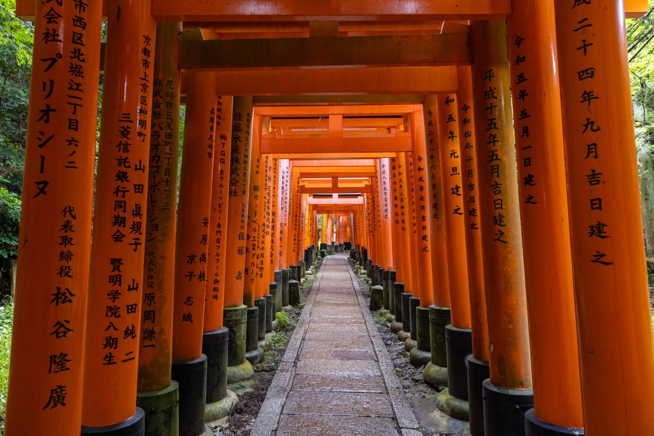 5 Uhr Tagwache .. .what else? Der Jetlag lässt grüßen. Wir nützen jedoch den Vorteil und sind sogar einer der Ersten bei einem der bekanntesten Schreine Japans - FUSHIMI INARI - der Schrein der 10.000 Schritte. Und das sollte sich bewahrheiten, mit Jetlag, um 6 Uhr in der Früh und noch bergauf … Auffällig sind hier die Alleen mit tausenden orangen Toriis, teilweise umringt von Füchsen, die Boten der Gottheit. Meine morgendliche Bergwanderung wurde dann auch gründlich mit meinem ersten Matcha-Strawberry belohnt und er sollte nicht der letzte sein ,-)