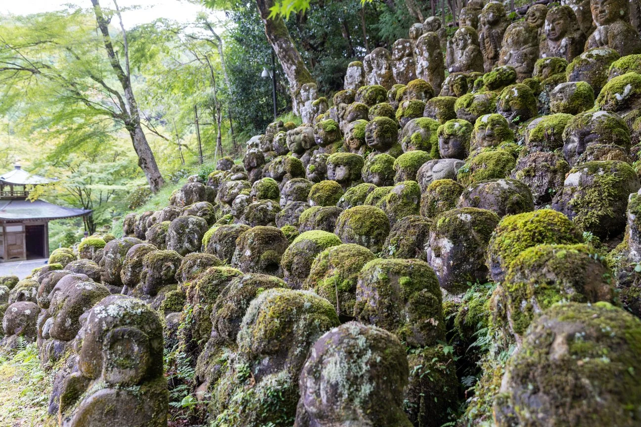 KINKAKU-JI - der goldene Pavillon, ein buddhistischer Tempel im Norden Kyotos, deren obere Stockwerke mit Blattgold verziert sind; der ARASHIYAMA BAMBOO FOREST mit seinem Flötenspieler, der OKOCHI SANSO GARDEN - ein Ruhepol mit Aussicht auf die Stadt und der OTAGI NENBUTSUJI TEMPEL mit 1.200 Arhat-Statuen, die den Hügel rund um den Tempel bedecken und eine friedliche Zuflucht für alle Besucher darstellen.